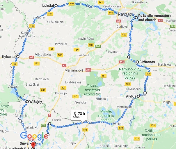 Podział trasy na odcinki dzienne zostanie ustalony bezpośrednio przed wyjazdem. Trasa może ulec zmianie w razie ograniczeń związanych z epidemią COVID-19 (Litwa planuje znieść kontrole graniczne i obowiązek kwarantanny od 17.06.2020 r., ale może to ulec przesunięciu)