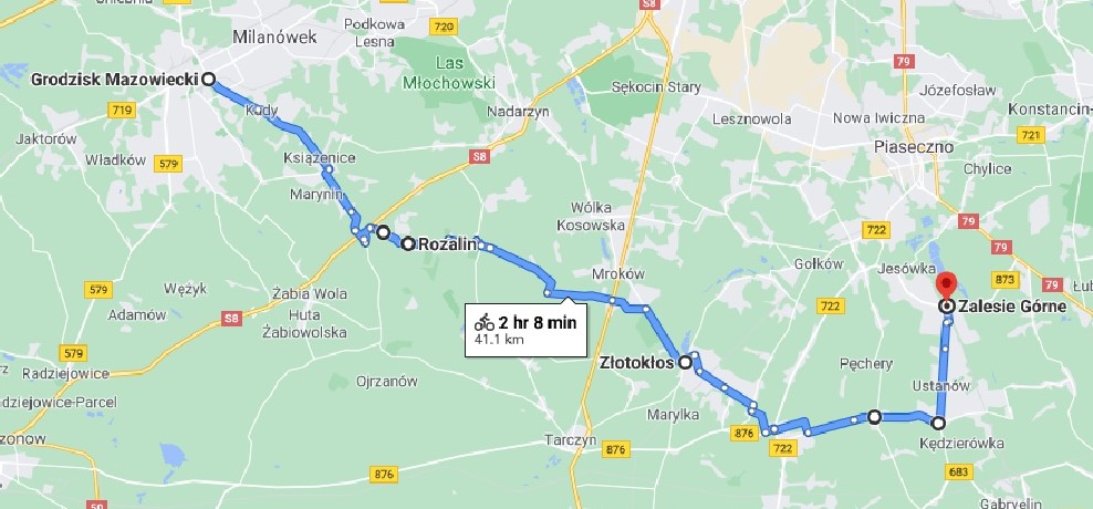 Wycieczka rowerowa na trasie Grodzisk Maz. - Książenice - Siestrzeń - Rozalin - Młochów - Wola Mrokowska - Złotokłos - Łoś - Piskórka - Zalesie Grn. (42 km, głównie po drogach asfaltowych).