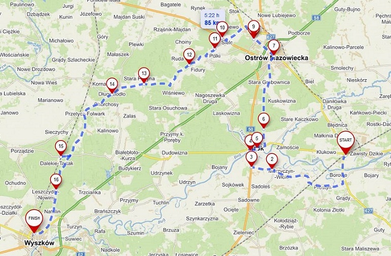 Dla chętnych możliwość dojazdu do Wyszkowa (wówczas trasa wyniesie 85 km). Link do mapy: https://en.mapy.cz/s/motekevafa