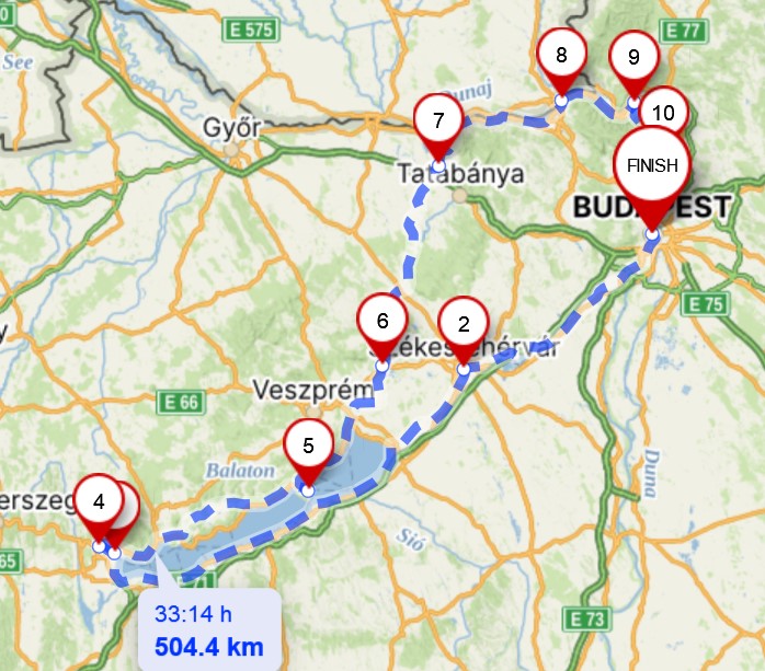 26.04.2024 (pt): Budapest – Érd (Szapáry-kastély) – Martonvásár (Brunszvik-kastély, park pałacowy, Muzeum Beethovena) – Velence (Europa Park, jez. Velencei-tó) – Gárdony 53 km (358m, 364m)
