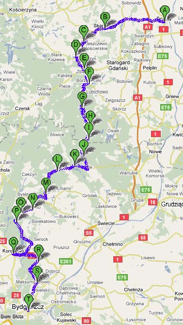 Trasa rowerowa: Tczew - Szpęgawa - Turze - Godziszewo - Bolesławowo - Skarszewy - Więckowy - Pogódki - Góra 45 km