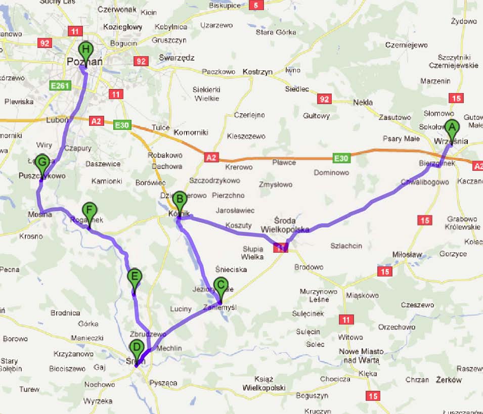 Trasa rowerowa: Września - Środa Wlkp. - Kórnik - Zaniemyśl 55 km