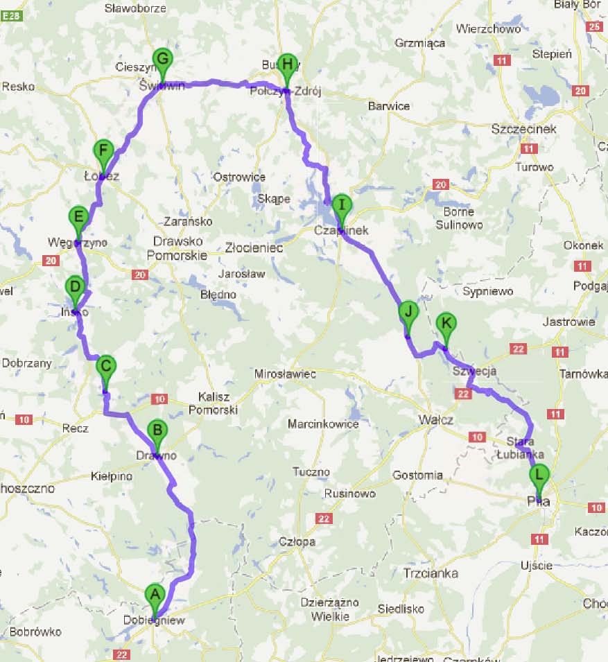 Trasa rowerowa: Głębokie – Ińsko – Węgorzyno – Łobez – Świdwin – Sława 73 km
