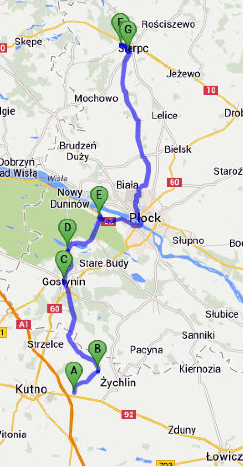 Powrót z Sierpca poc. KME 27 odjeżdżajacym o 17:49, przyjazd do W-wy Gdańskiej o 20:43. Cena biletu normalnego 25,50 PLN. Przewóz roweru bezpłatny.