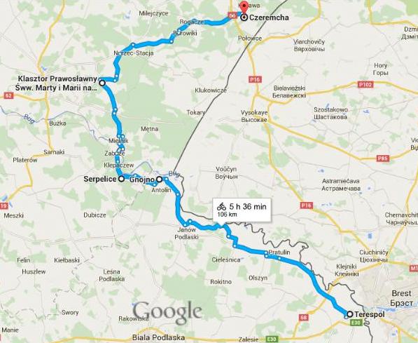 Trasa rowerowa: Serpelice – przeprawa przez Bug - Mielnik – Święta Góra Grabarka – Żerczyce – Nurzec - Rogacze - Czeremcha 55 km