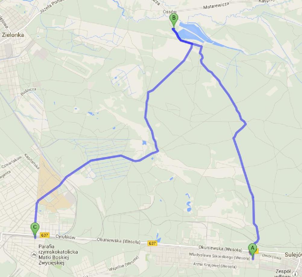 Wyjazd poc. SKM linii S2 z W-wy Lotnisko Chopina o 08:39, W-wy Służewiec o 08:43, W-wy Rakowiec o 08:47, W-wy Zach. o 08:55, W-wy Śródm. o 09:02, W-wy Wsch. o 09:10. Przyjazd do W-wy Wola Grzybowska o 09:24. Zbiórka na stacji W-wa Wola Grzybowska po przyjeździe pociągu.