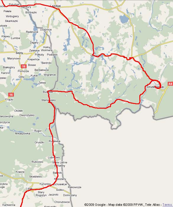 Trasa rowerowa: Dabrowa Bialostocka - Lipsk - Wolkusz - Rudawka - Kudrynki - Muly - Stanowisko - Budwiec - PL/LT - Jez. Vieisiejo 58 km